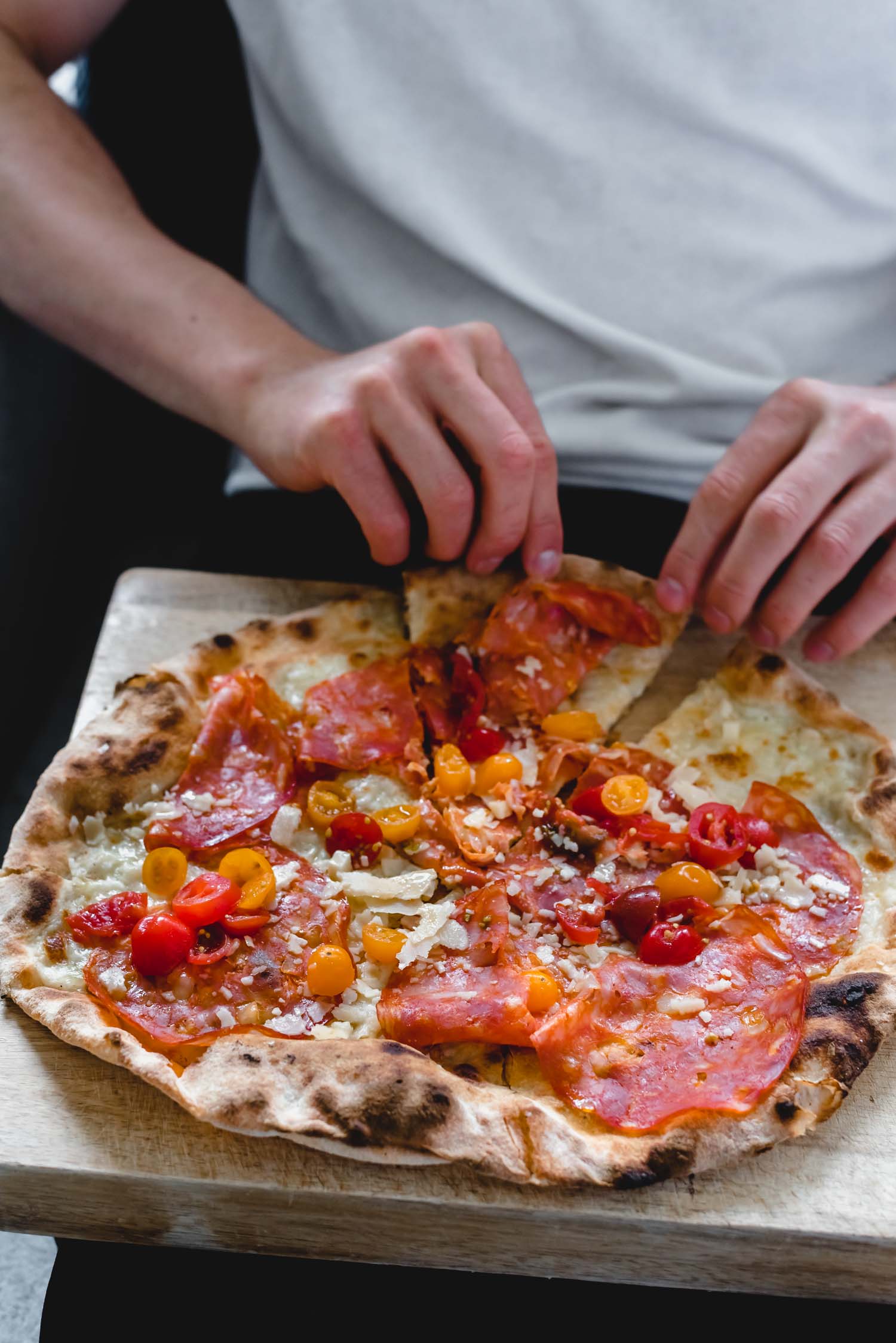 When you sit down at a pizzeria in Italy – whether it’s Naples, Rome, or our inspiration here at MaMeMi in Copenhagen – your pizza arrives unsliced, straight from the oven, almost too hot to look at.